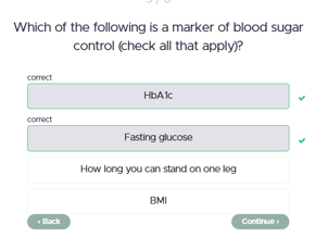 In Teachable quiz questions where you are asked to 'check all that apply', it will seem as though you cannot click two answers. You choose the first correct answer, which turns pink and then grey, like the first image: